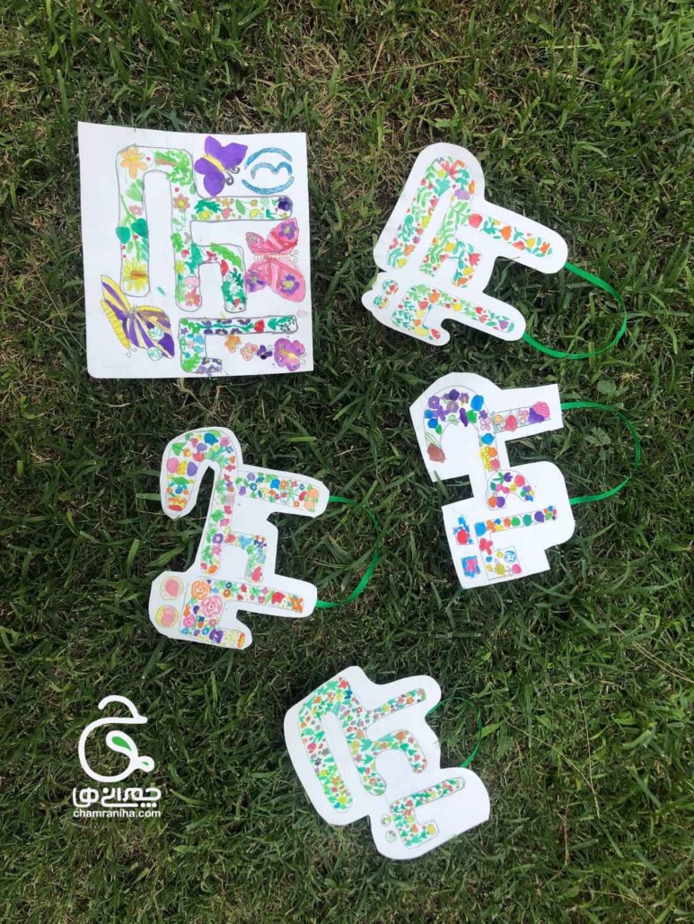 مربی میتواند یک عبارت کوتاه دینی را انتخاب کند. برای نمونه دانشآموزان نام امام علی را میسازند و درباره ویژگیهای اخلاقی ایشان گفتوگو میکنند. این کار هنر و مفهوم را در کنار هم قرار میدهد.
