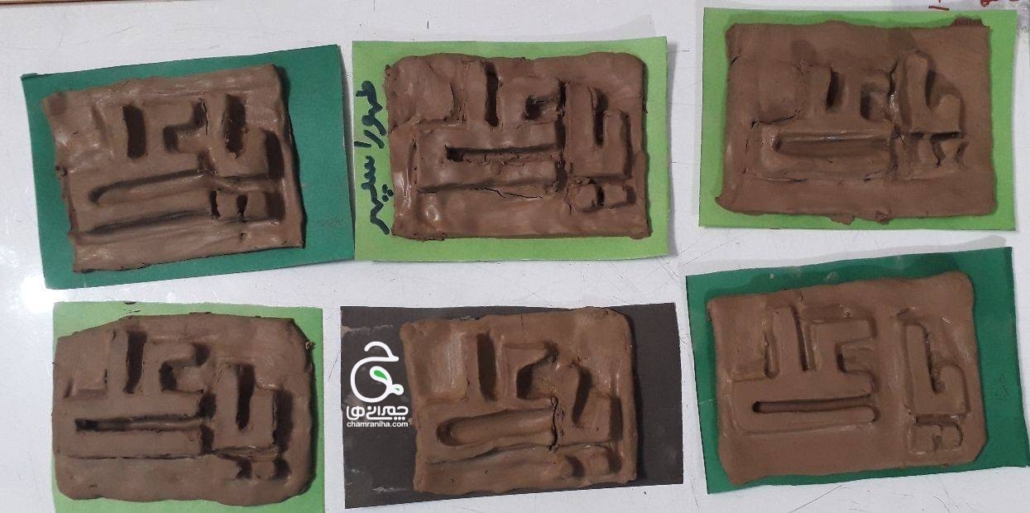 مربی ابتدا گل نرم و یک تخته زیرکار آماده میکند. سپس دانشآموزان عبارت مورد نظر را طراحی میکنند.