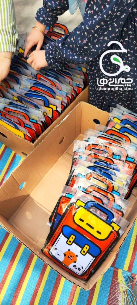 - حتی بچههای ۴ و ۵ ساله هم با خالههایشان وارد شدند؛ برچسبها و لیبلها را بریدند، چسباندند و با پاپیونها بستهها را زیباتر کردند.